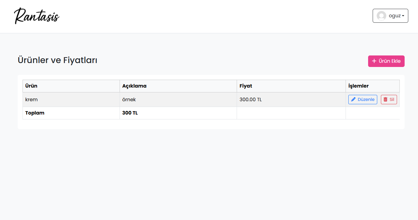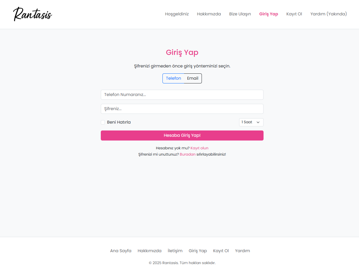 a. Rantasis ile yaptığınız sözleşmeden sonra size bir şifre verilecektir.