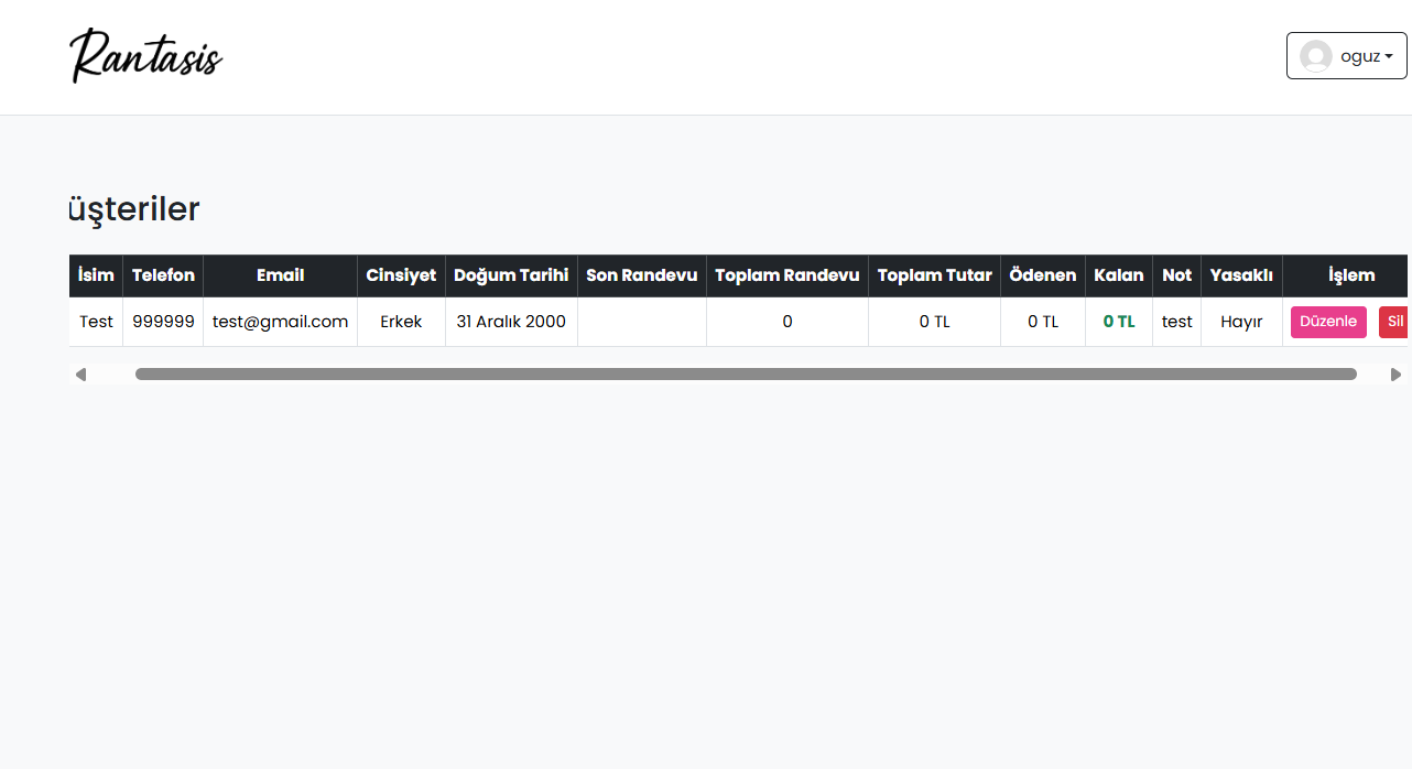 b) Ve düzenle üzerine tıkladığınızda müşteriler hakkında detaylı bilgiler öğrenebilirsiniz;