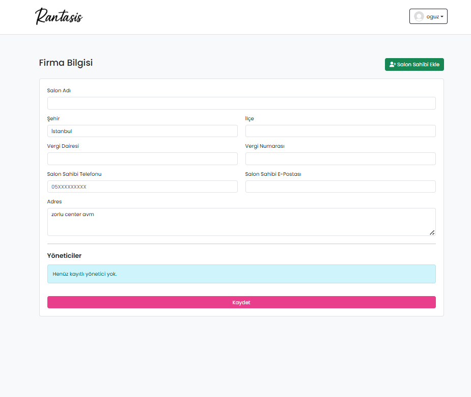 Rantasis Güzellik Salonları Randevu Takip ve İşletme, Yönetim Sistemi Programı