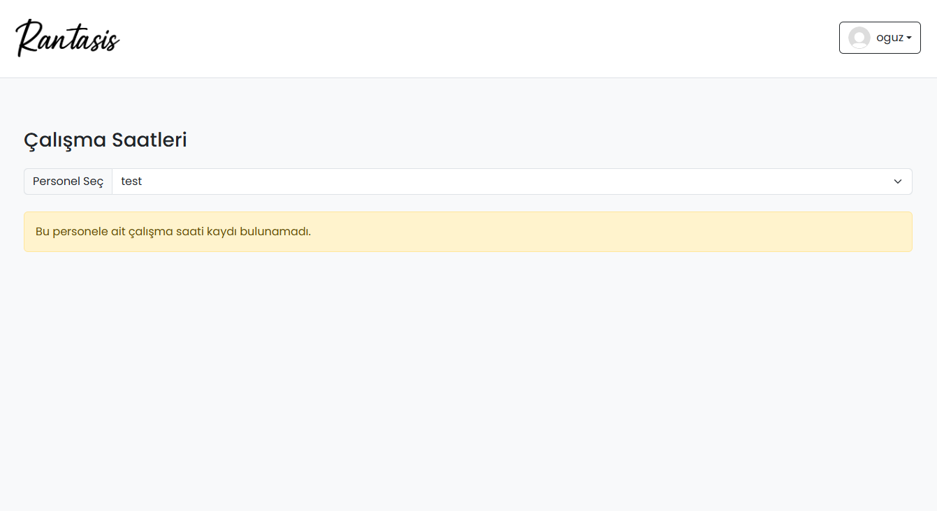 f. Sayfanın sağ üst tarafında bulunan “İsminizin yazdığı” butonuna tekrar tıklayarak “ÇALIŞMA SAATLERİ” sekmesini tıklayınız ve aşağıdaki şekilde açılan sayfada personelinizin çalışma saatleri ile ilgili bilgileri giriniz;